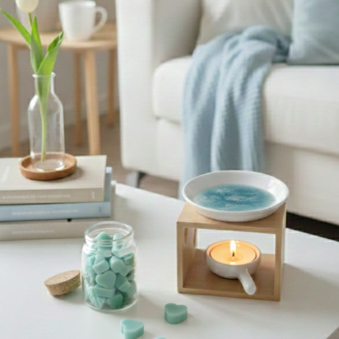 - Déposer la quantité souhaitée de minis fondants sur votre brûle-parfum, puis allumer une bougie chauffe plat.